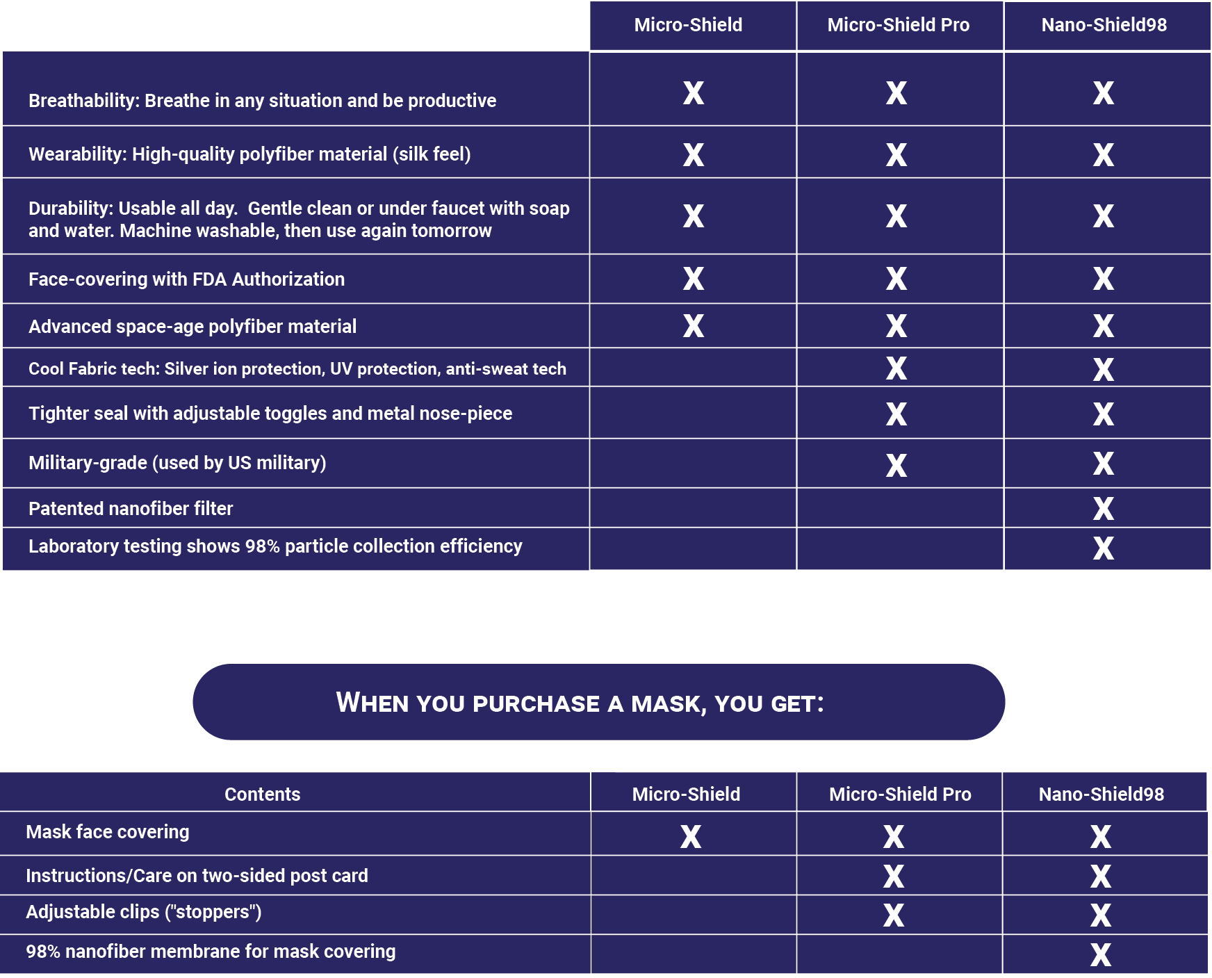 Micro-Shield Pro is a high quality face mask that can be an effective and comfortable way to protect our communities from viral spread. This is an excellent choice for the general public to use in line with current CDC recommendations. Micro-Shield has been authorized by FDA under an Emergency Use Authorization (EUA) for use by the general public and health care personnel (HCP) as source control to help prevent the spread of infection or illness during the COVID-19 pandemic. Click here to get more info about our FDA EUA.